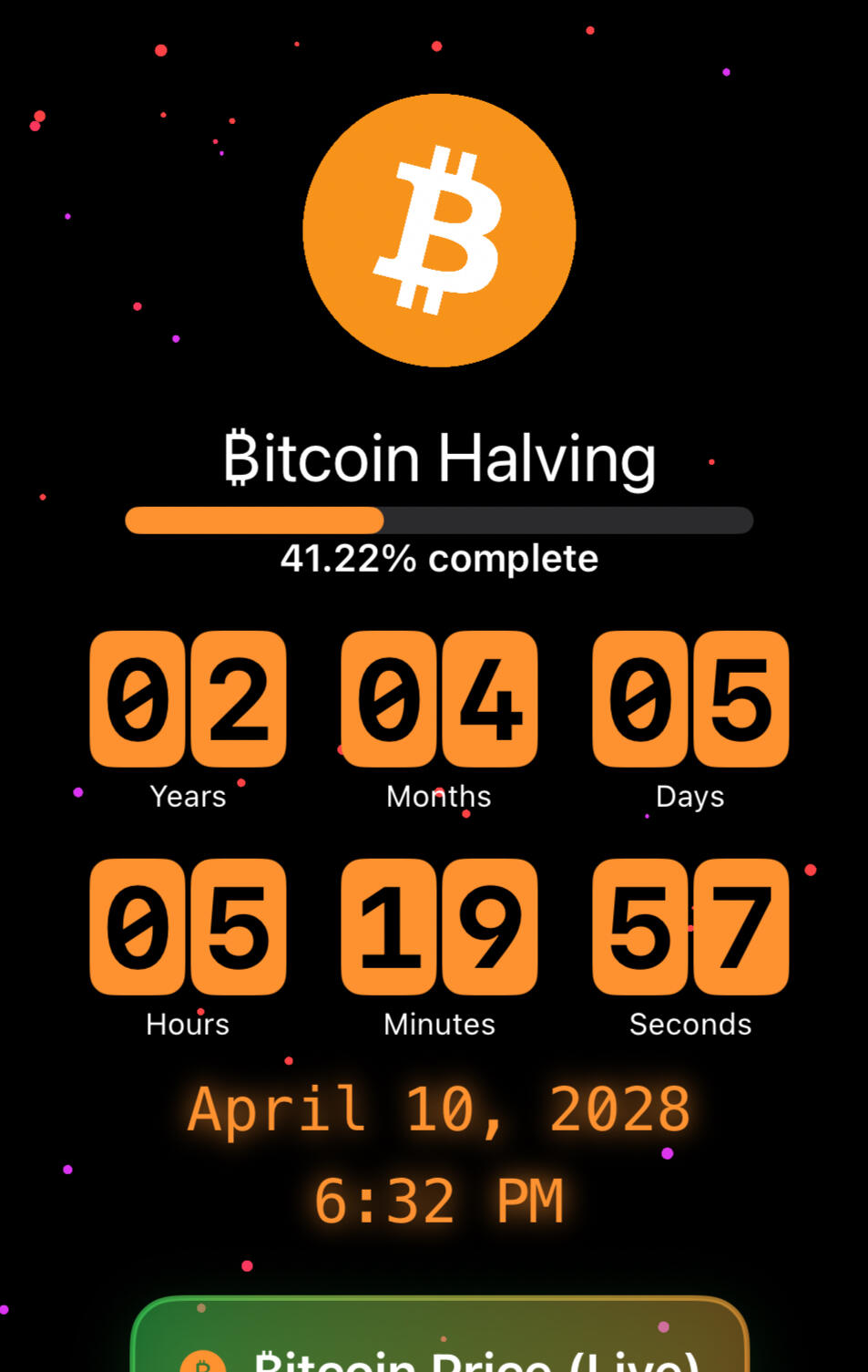 Watch the bitcoin halving countdown in real time on the app or widget, easily check the bitcoin price with included widgets