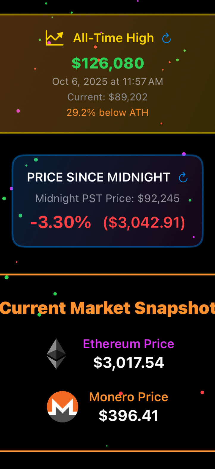 CoinCap API (https://api.coincap.io) - Supplementary cryptocurrency market dataBlockchain DataBlockstream API (https://blockstream.info/api) - Bitcoin blockchain information including current block height, halving calculations, and network statisticsTraditional Financial DataGold and Silver prices - Obtained from publicly available financial data APIsGovernment DataUS National Debt - Official data from the U.S. Department of the Treasury's TreasuryDirect website (https://www.treasurydirect.gov)All data sources listed above are public APIs that do not require authentication or user identification. The App requests this information anonymously on your behalf.
